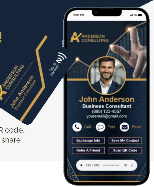 It will be the LAST business card you'll ever need to showcase your business. It is a eco-friendly, always available and makesa lasting impression every time. It's designed to easily capture new prospects, referrals and raving reviews. A centralized link to SHARE EVERYTHING about your business.
