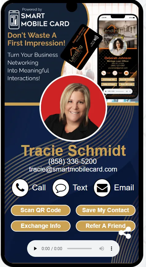 After you share your Smart Mobile Card link, they can quickly save your contact information to their mobile phone's address book by simply tapping on the "Save My Contact" tab.